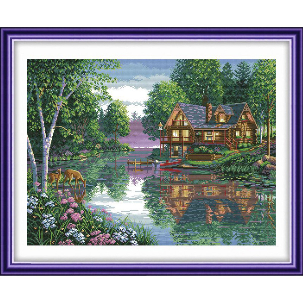 "DIMENSIONS" наборы для вышивания 70-35285 "Посёлок на берегу озера" 38 x 30 см