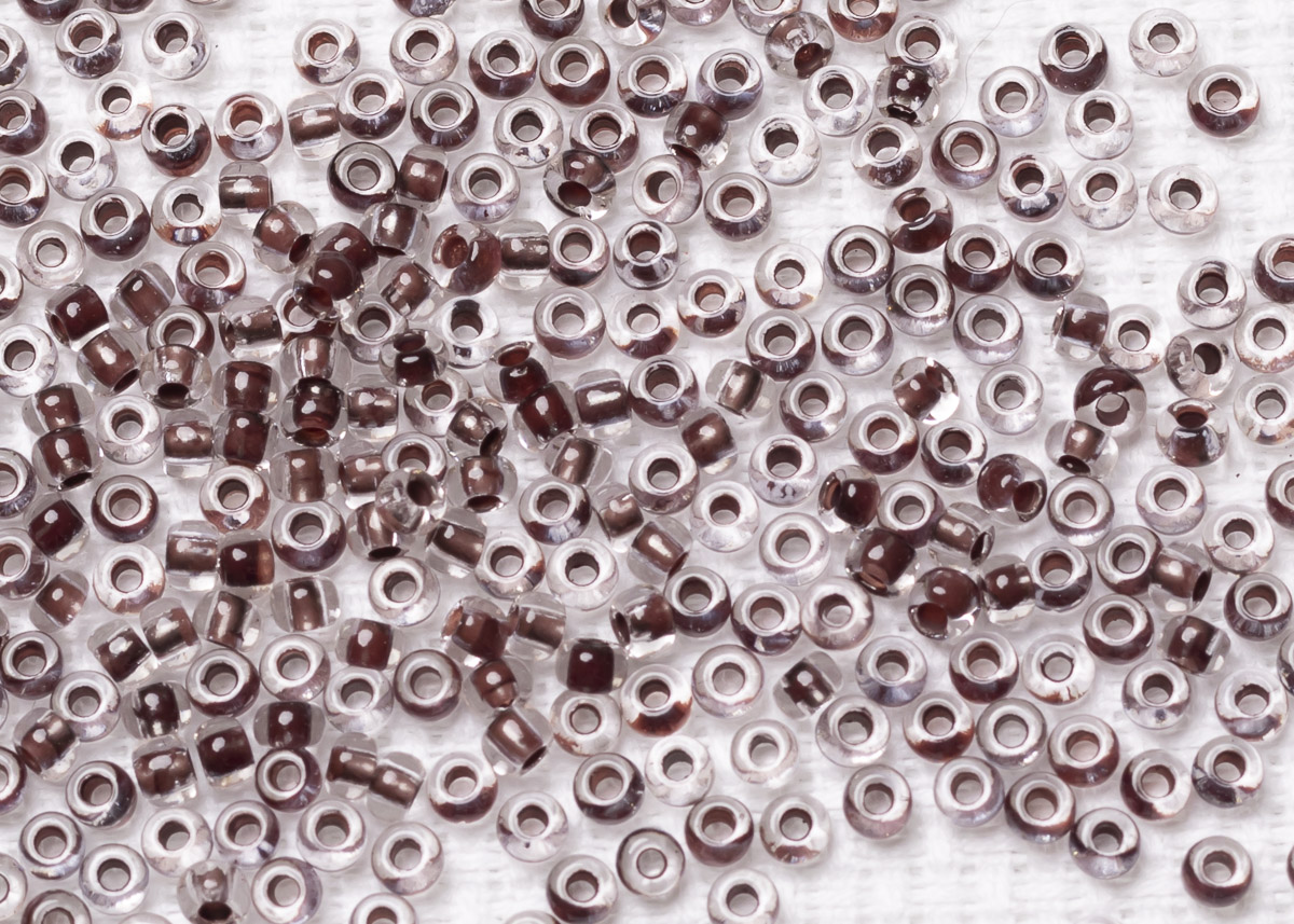 Бисер Чехия круглый 10/0 500г 38019 прозрачный, темно-коричневая линия внутри